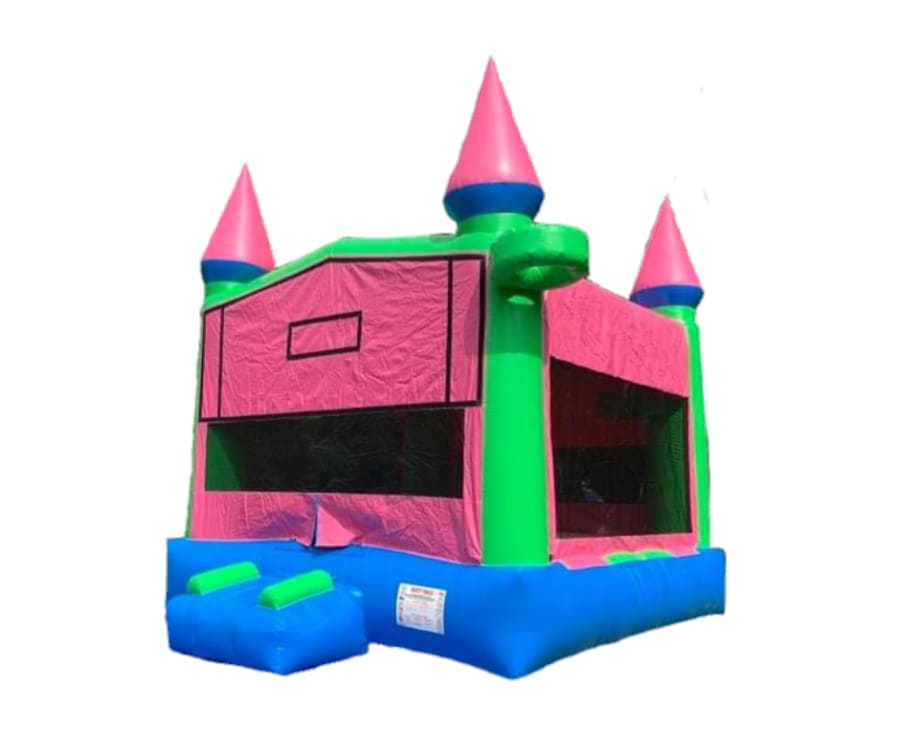 Turn up the fun with our neon-colored bounce house! This inflatable bounce house features bright neon pink, green and blue colors that will light up any event. Whether you're hosting a birthday party, picnic or any other outdoor event, this Neon Bounce House is sure to be a hit. Book now and add some glow to your next gathering!