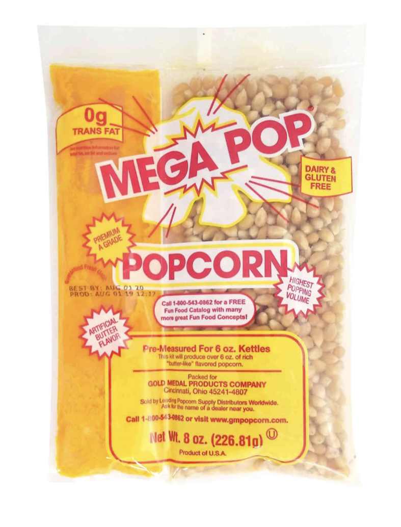 Package includes (5) 6 oz. Ready-to-Use Popcorn Kits. This all-in-one popcorn kit contains coconut oil, popcorn kernels, and salt in separate pouches for easy popping.
