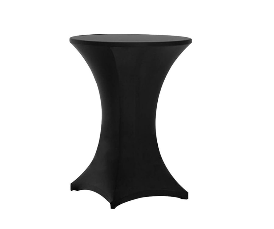 The stretchy spandex material fits snuggly over standard cocktail tables, creating a smooth and polished look. The black color is versatile and will match any color scheme or decor style, making it ideal for weddings, corporate events and private parties. Upgrade your next event with tour stylish and practical tablecloth rental.